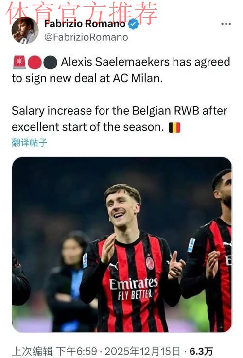 意甲媒体透露:米兰与萨勒马克尔斯续约已经达成一致,球员将获得加薪